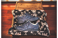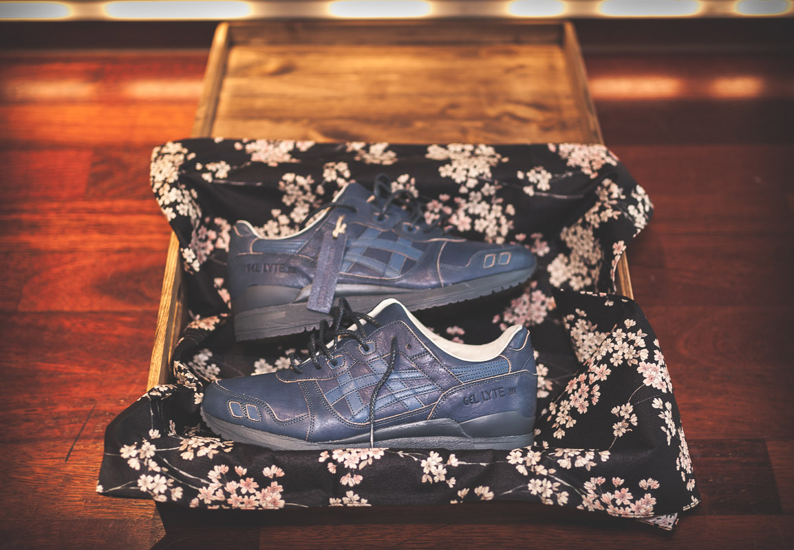 The packaging is premium too. The kicks are wrapped in Japanese scarves and placed in a wooden sneaker boxes.