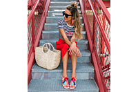 It’s a common joke in the house that when I get passionate about things I get really animated, move my hands around a lot, or raise my voice (when I’m not even mad). Or when we argue (yes we argue haha and it’s usually over really dumb things), Cody always teases me that I can get feisty and attributes it to my ‘spicy latin blood’ (I’m half Colombian – so when I saw this shirt I had to get it and it looks even better in person. I love the intersection of a graphic tee with embellishment – how good are these tassels! I definitely haven’t been shying away from bright colors lately. I love these bold red Kate Spade pants and they are actually really versatile! I’ve already worn them multiple times. And the statement bow totally makes them unique and a statement piece. And of course the shoes! I never shy away from pom poms!! Obsessed with these sandals!