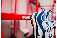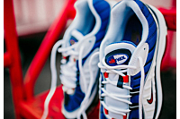 Getting the festivities started this week will be the OG Gundam colorway which features a patriotic color combination of red, white, and blue. White and royal blue dominate the upper with navy appearing on the mudguard. Red mini Swooshes then appear on the toe and side panels with red also landing inside the full length Air Max unit. A black rubber outsole completes the look.